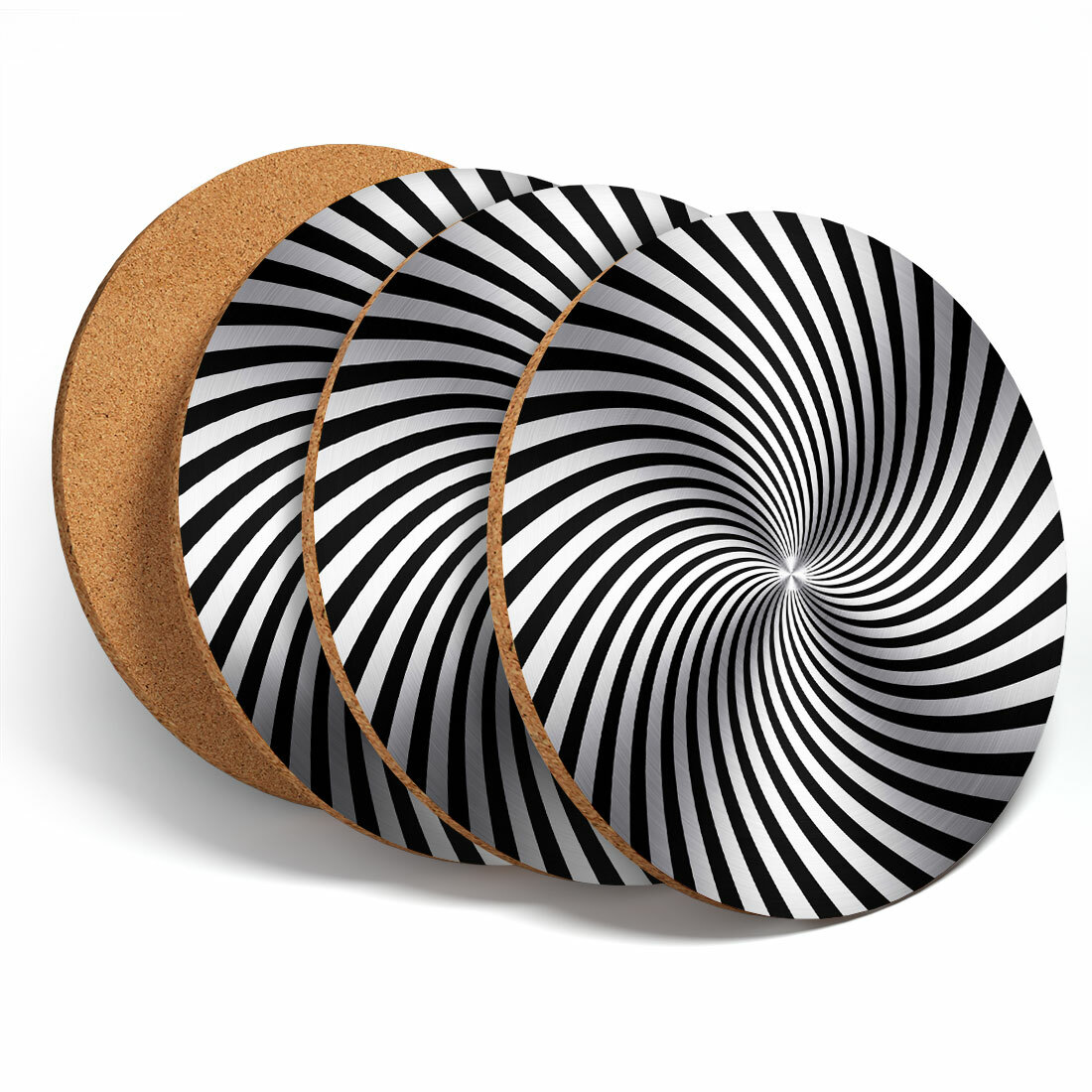 4 Set - Spiral Illusion Black White Coasters - Kitchen Drinks Coaster Gift #3794