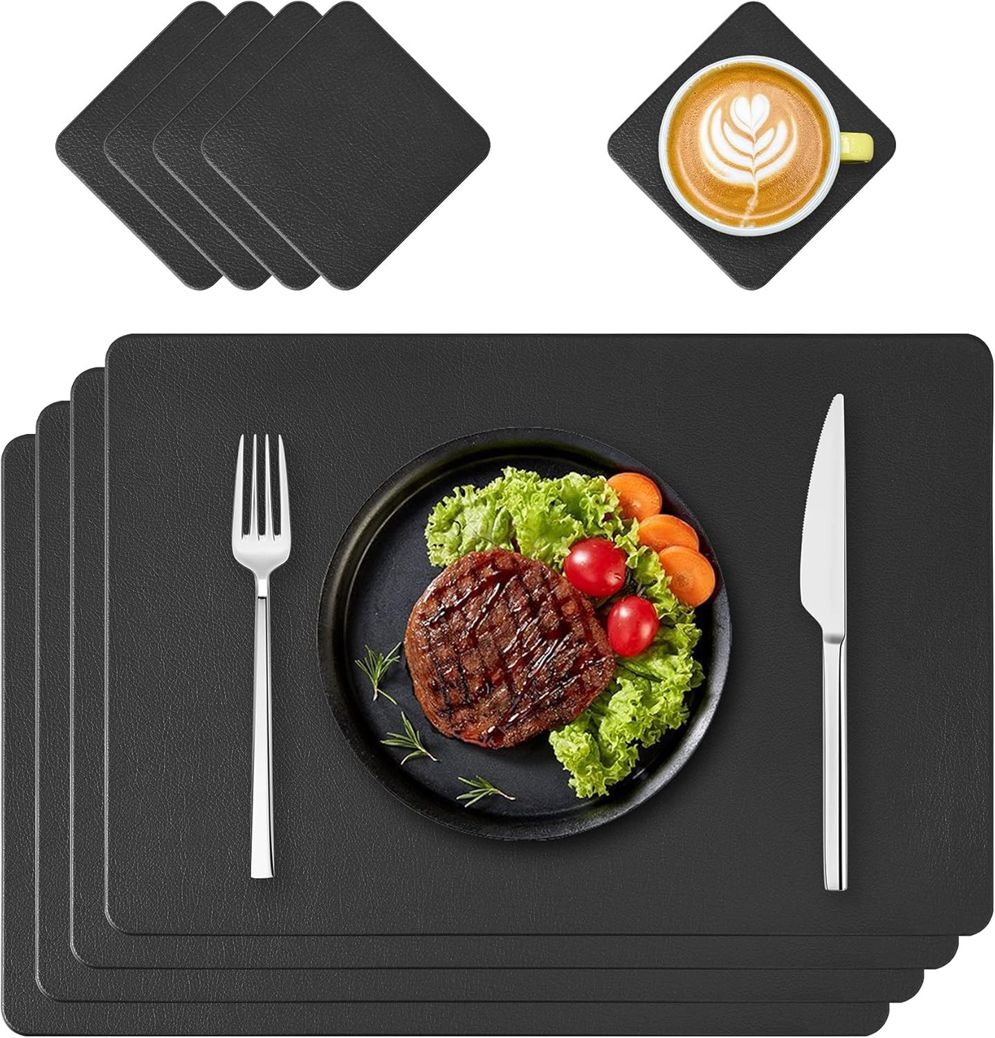 Placemats PU Leather Place Mats and Coasters Black Sets of 4 Christmas Placemat
