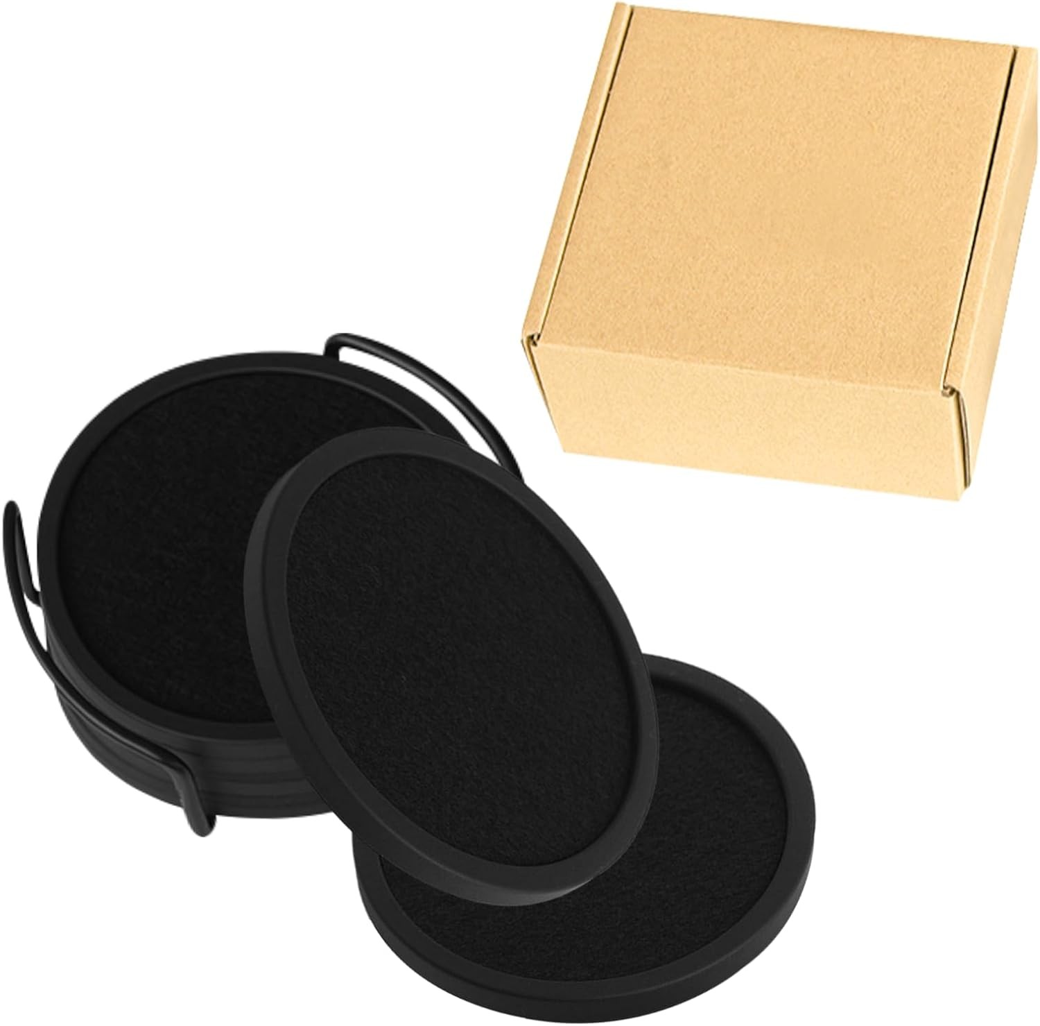 Absorbent Drink Coasters with Holder Set of 6 Black Silicone Coasters with Remo