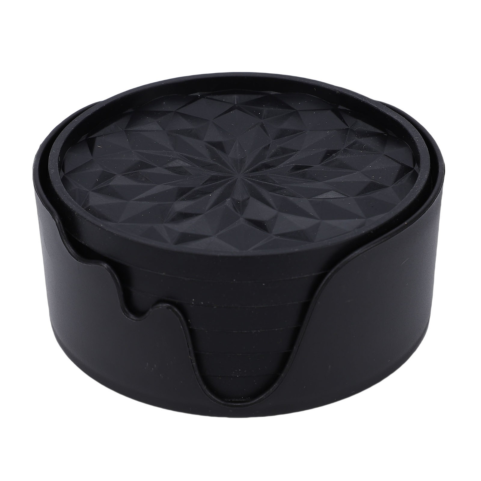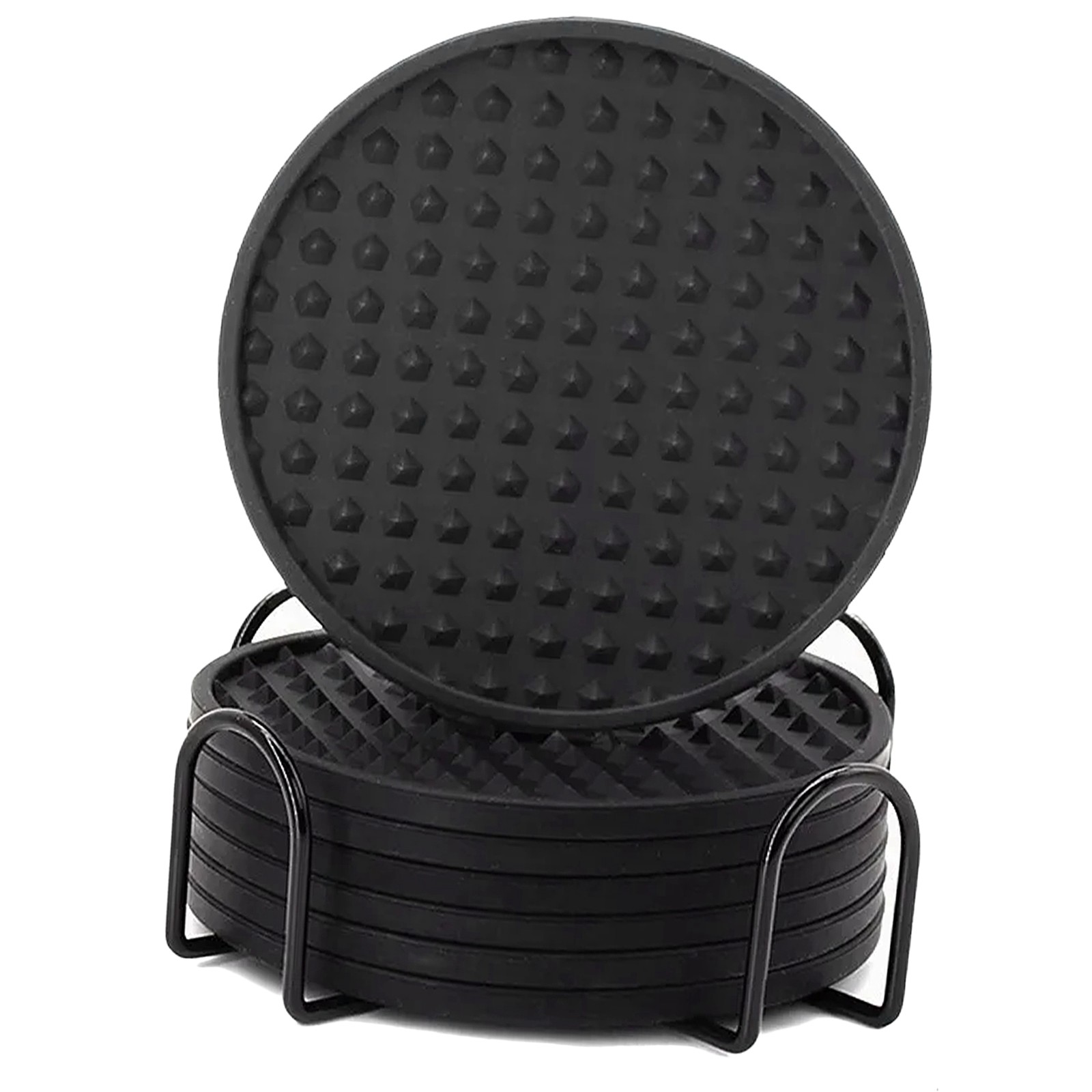 Black Silicone Coasters With Holder For Drinks Set Of 7 Anti Slip Cup Coasters