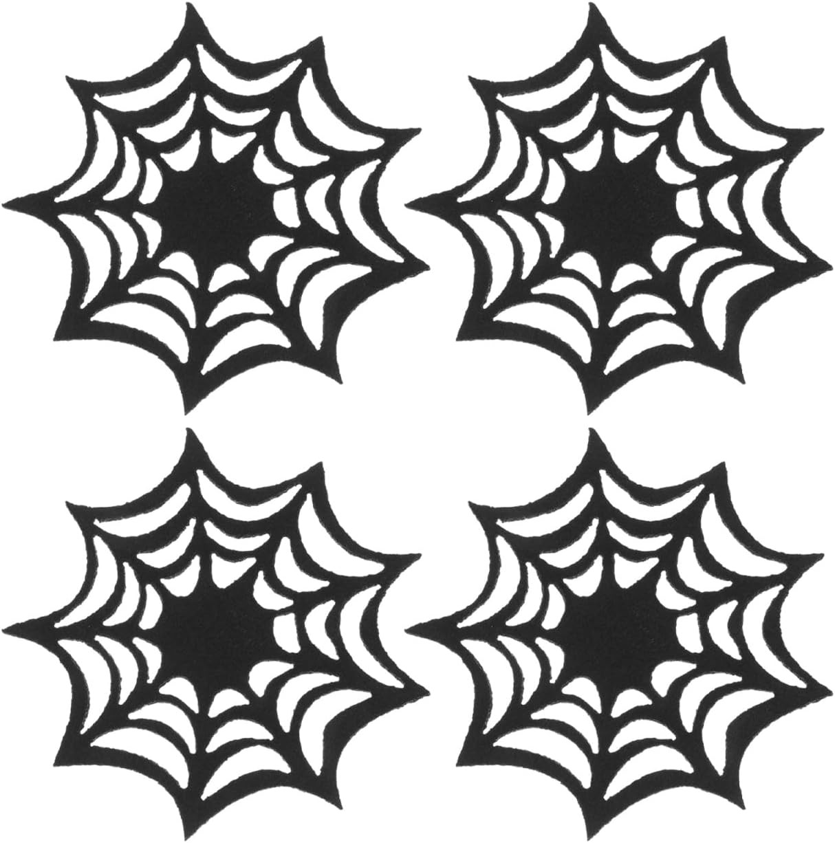 HOMSFOU 4Pcs Halloween Cobweb Coasters Black Felt Spider Web Table Placemats He