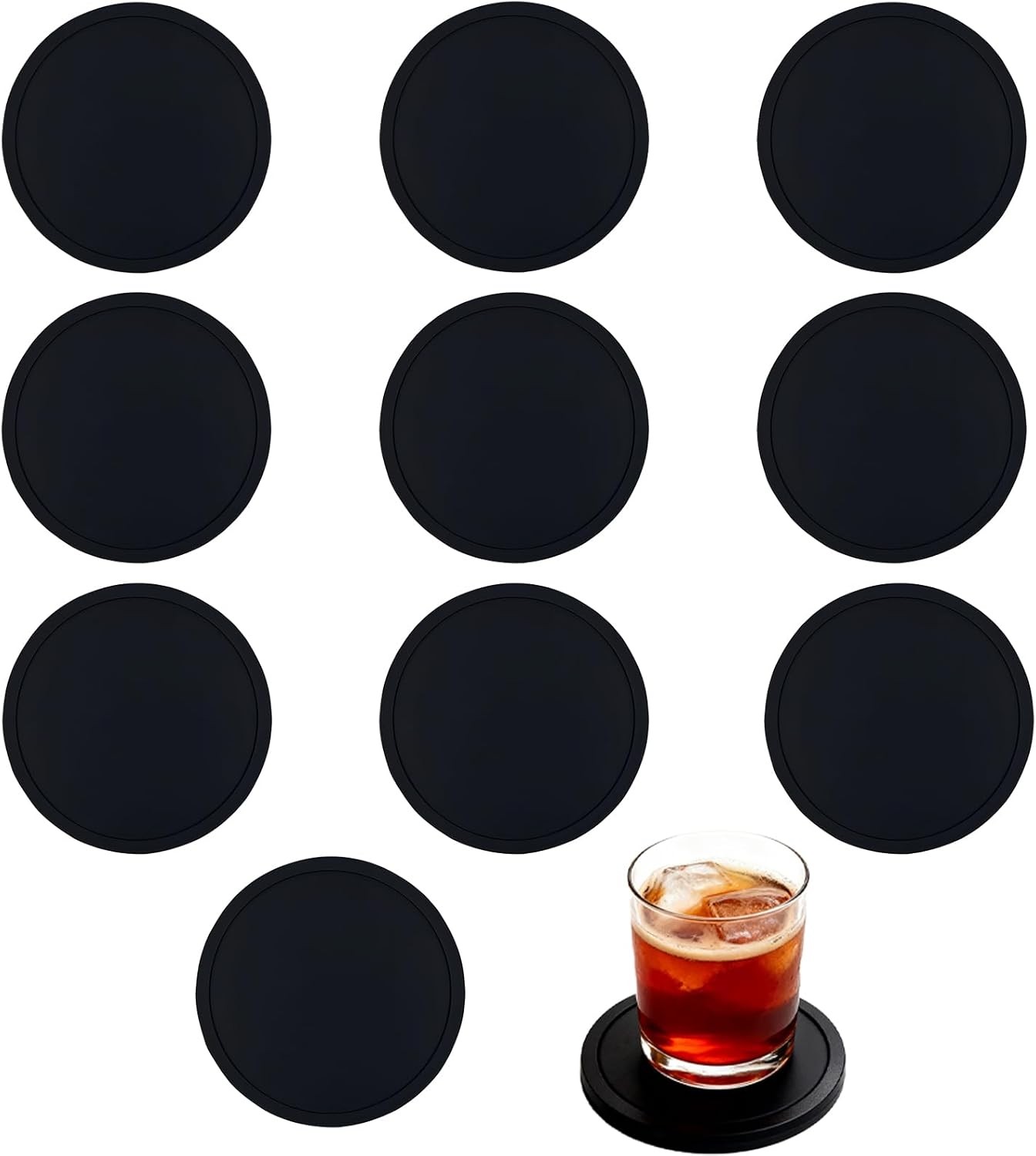 Black Coasters Set of 10, Drink Coasters Cup Mats Coaster Sets Non-Slip Sili