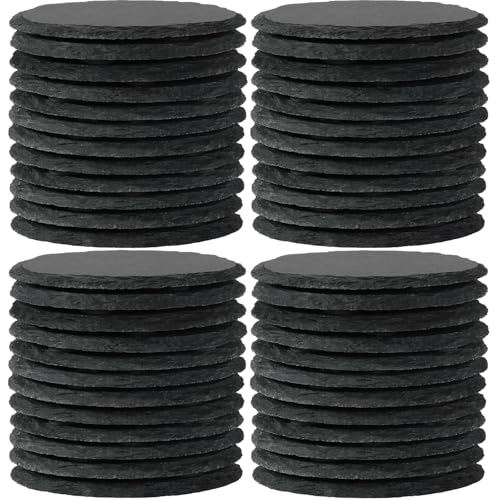 48 PCS Round Slate Coasters for Drinks, WEWINK PLUS 4 Inch Blank Black Stone Coasters Bulk with Anti-Scratch Backing for Laser Engraving, Home Decor, Bar,Wedding, Housewarming Gifts