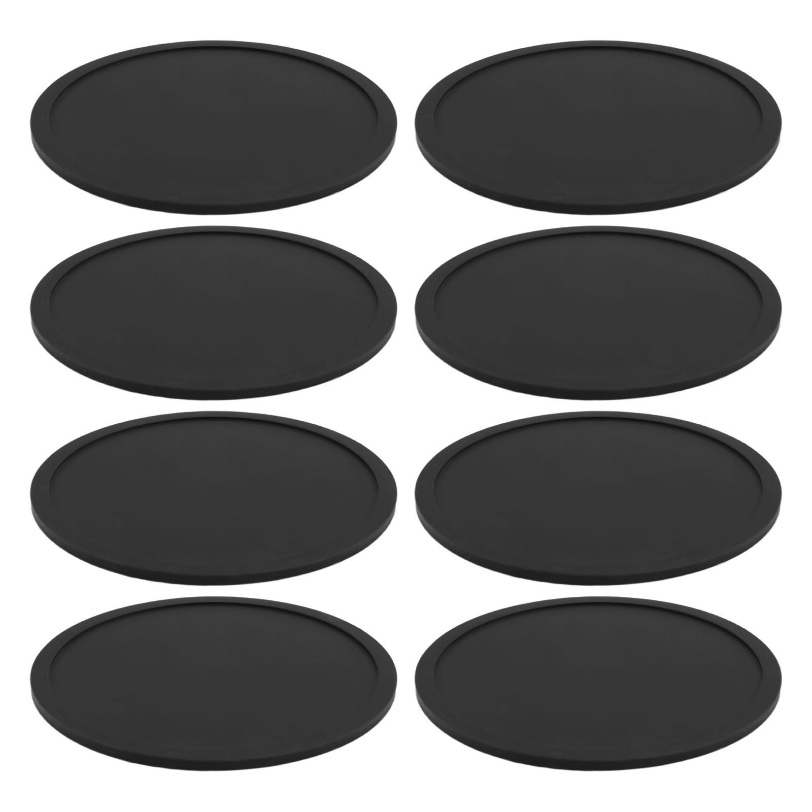 8pc Set Round Black Silicone Coasters Non-slip Cup Mats Pad Drinks Table Glasses