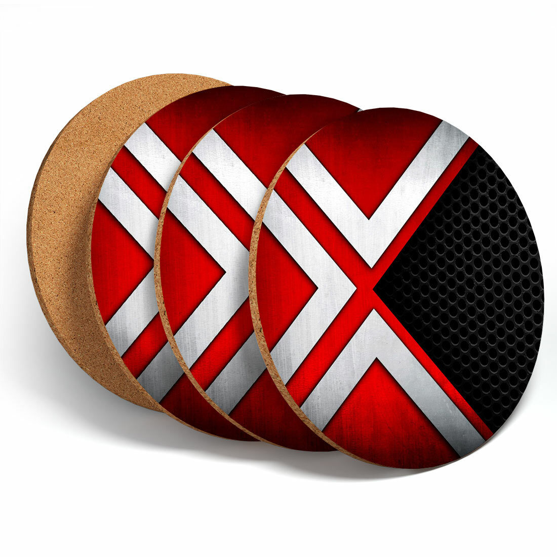 4 Set - Red Black Imitation Metal Coasters - Kitchen Drinks Coaster Gift #3906