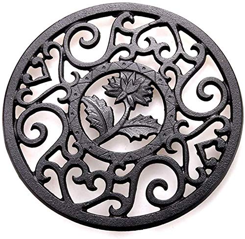 Webao Cast Iron Trivet Tea Pot Stand Multi-Use Insulated Carved Mat Durable Non Slip Coasters Black 13.5cm