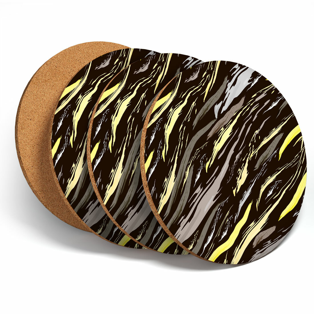 4 Set - Cool Yellow Black Paint Coasters - Kitchen Drinks Coaster Gift #3829
