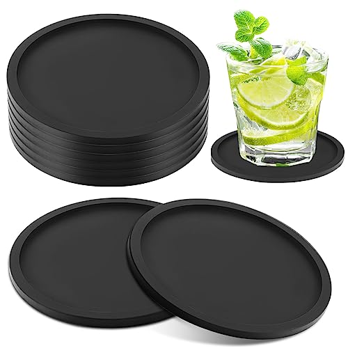 MOXYOY Black Coasters Set of 8 Round Silicone Drink Coasters. Non-Slip Cup Mats for Coffee, Beer, Wine Glasses, and Bottles. Perfect for Home & Bar Use (Black)