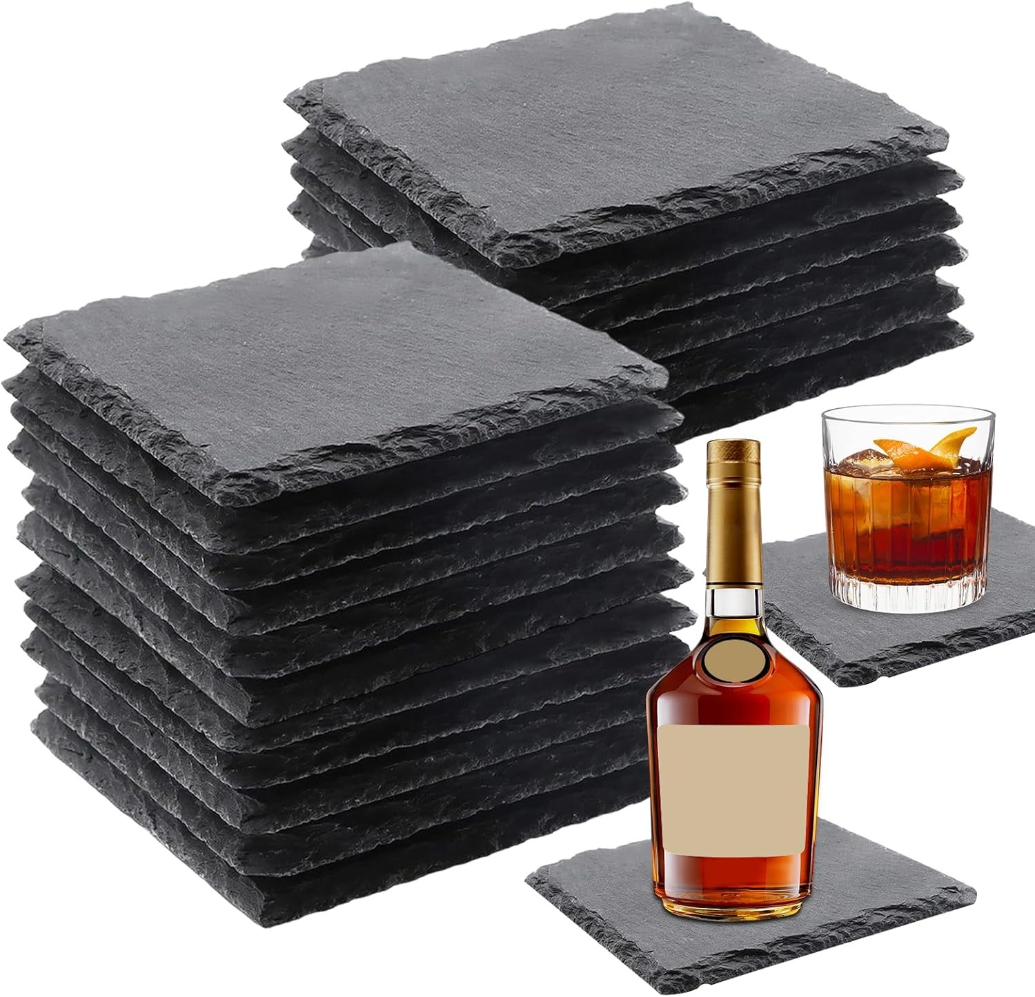 15PCS Slate Drink Coasters, 4 Inch Black Coasters Stone Coaster Set Square Ston