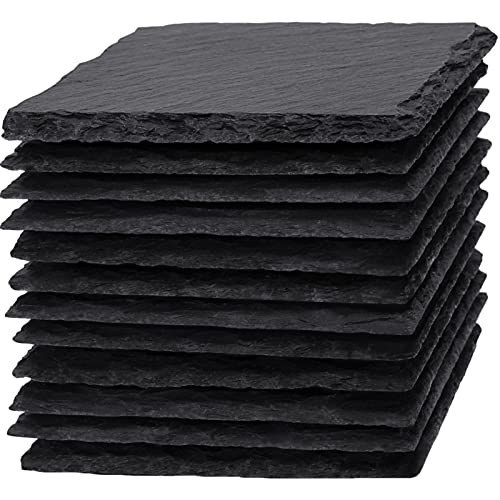 WEWINK PLUS 12 Pieces Coasters for Drinks, 4 Inch Black Slate Stone Coasters Bulk with Anti-Scratch Backing for Bar, Gifts, DIY, Laser Engraving, Kitchen, Home Decor, Square