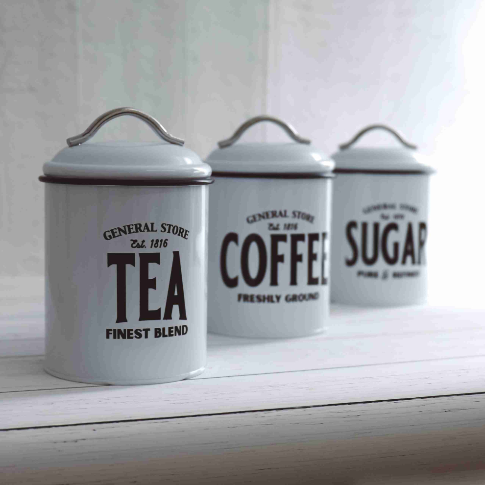 White/Black Retro Tea Coffee Sugar Metal Vintage Canisters Jars Tins