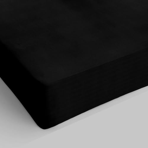 Zer0bed, Fitted Sheet with Corners, Single Colour, 100% Cotton, 30 cm Maxi Angle, 1 and a Quarter, Black, 130 x 200 cm