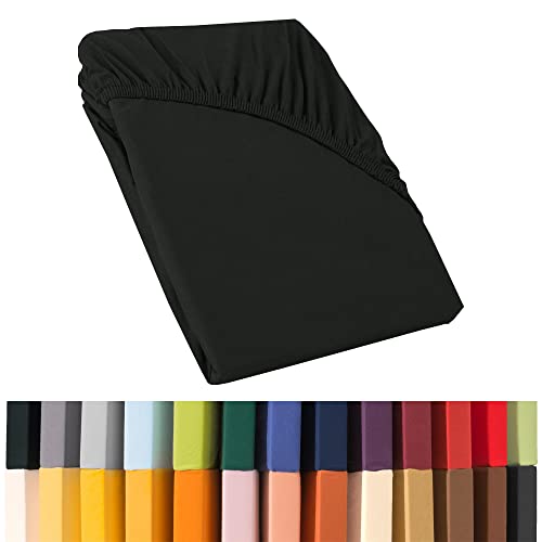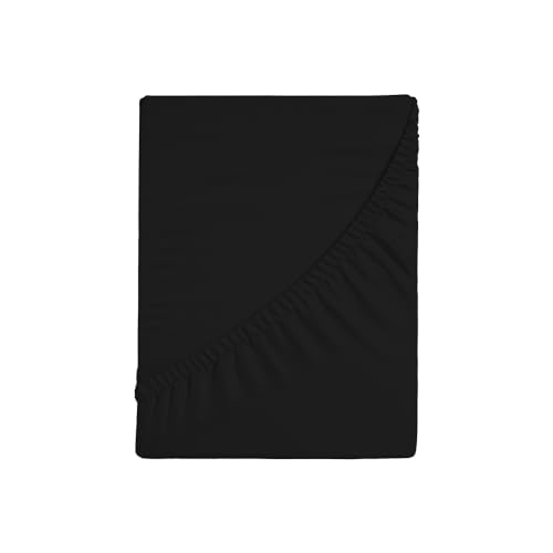 Biberna 77155/001/040 Jersey Stretch Fitted Bed Sheet, black, 140 x 200 cm - 160 x 200 cm