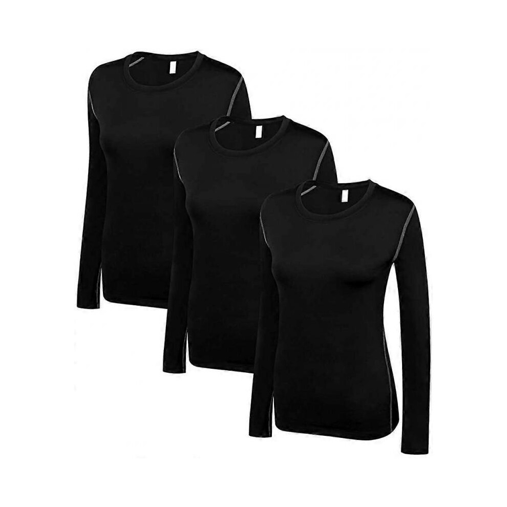 (Medium, 3 Pack Black) Women's Compression Shirt Dry Fit Long Sleeve Running Athletic T-Shirt Workout TopsSmall 3 Pack(black+white+grey)