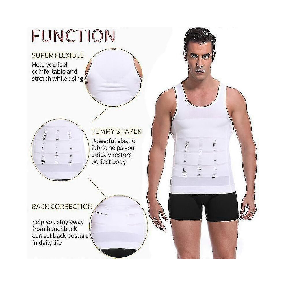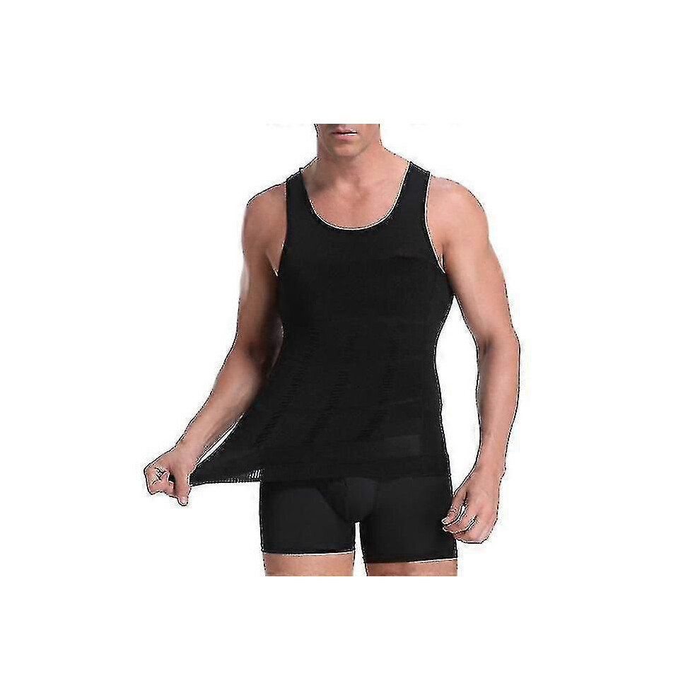 (black, XL) Men Compression Shirt Undershirt Slimming Underwear Summer Tank Tops Workout Vest Abs Abdomen Slim Body Shaper Tight Shapewear