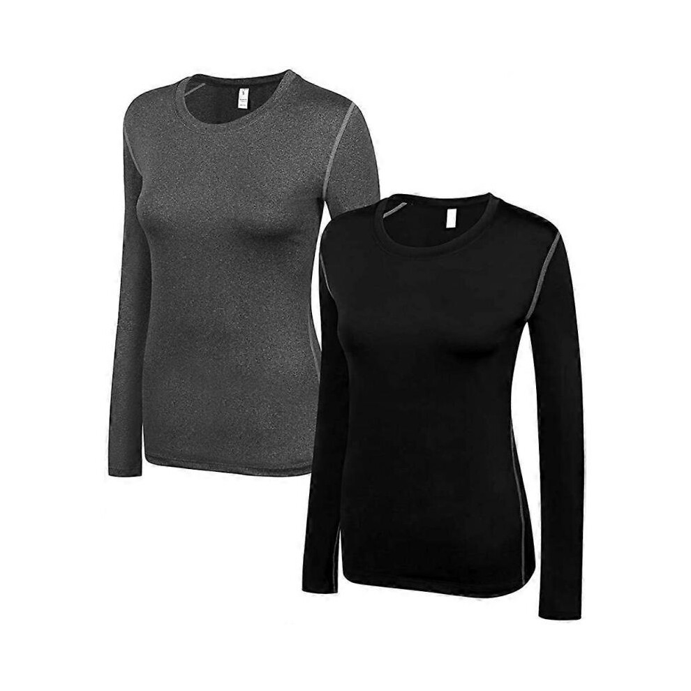 (Large, 2 Pack(black*grey)) Women's Compression Shirt Dry Fit Long Sleeve Running Athletic T-Shirt Workout TopsSmall 3 Pack(black+white+grey)
