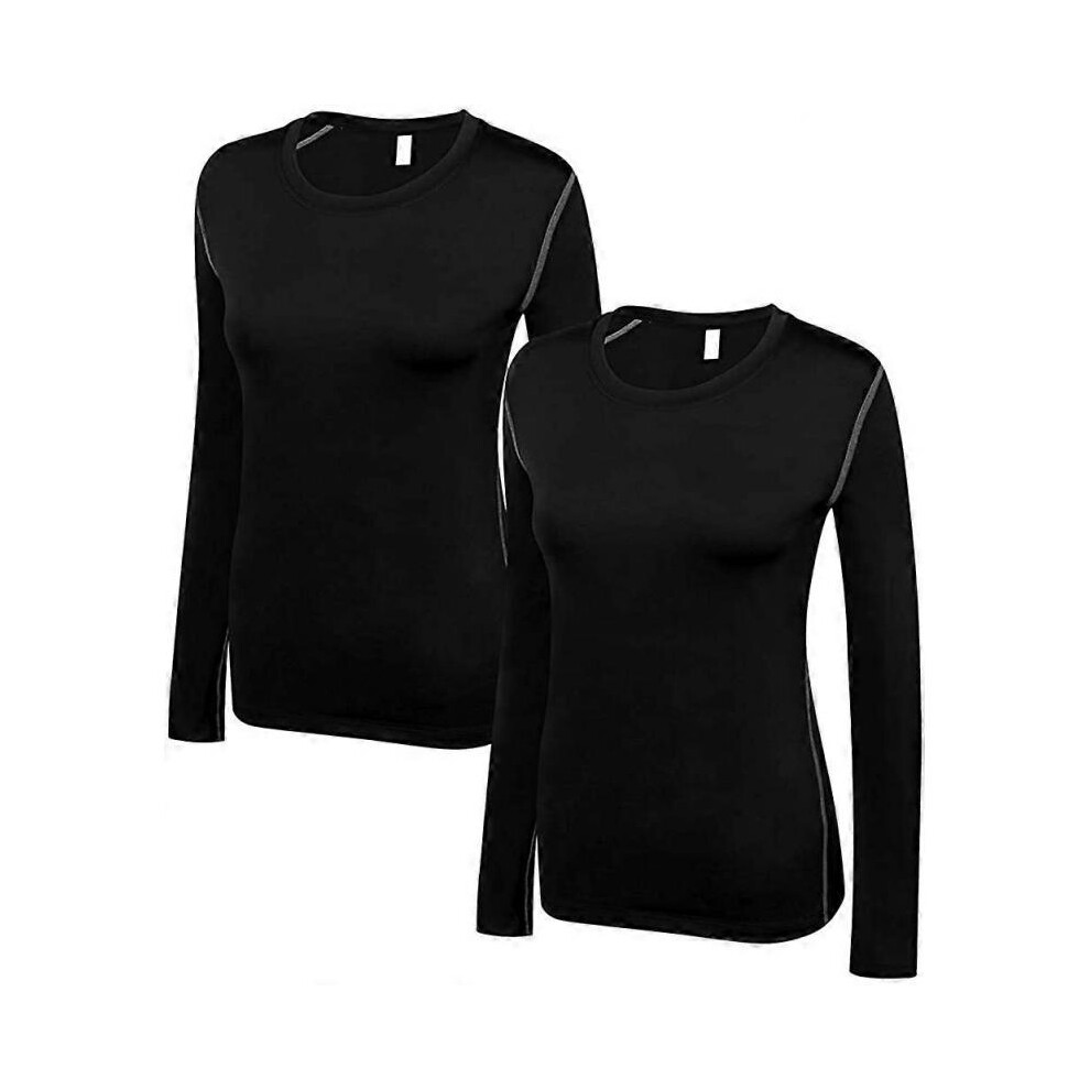(Large, 2 Pack Black) Women's Compression Shirt Dry Fit Long Sleeve Running Athletic T-Shirt Workout TopsSmall 3 Pack(black+white+grey)