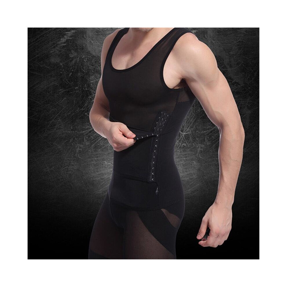 (XXL, Black) Men Gynecomastia Compression Shirt Waist Trainer Ming Underwear Body Shaper Belly Control Undershirt