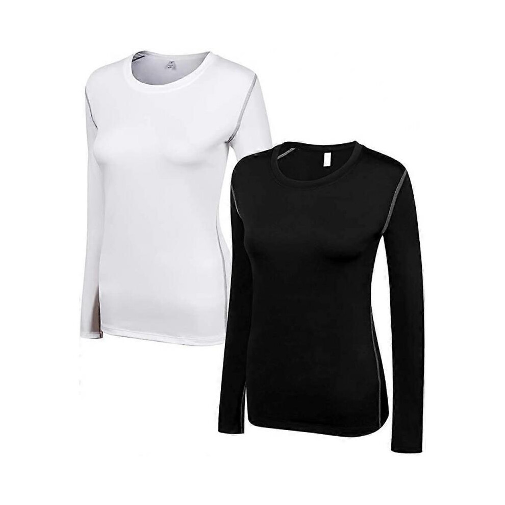 (Large, 2 Pack(black*white)) Women's Compression Shirt Dry Fit Long Sleeve Running Athletic T-Shirt Workout TopsSmall 3 Pack(black+white+grey)
