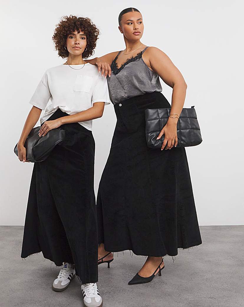 Black Cord Fit and Flare Maxi Skirt