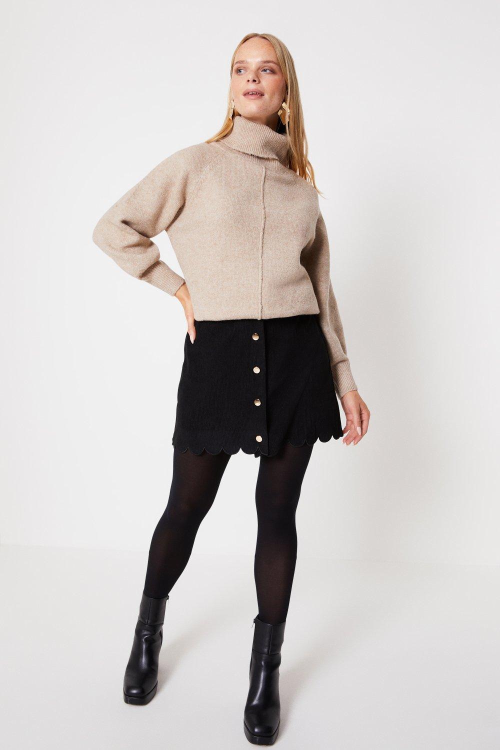 Cord Scallop Edge Button Through Mini Skirt