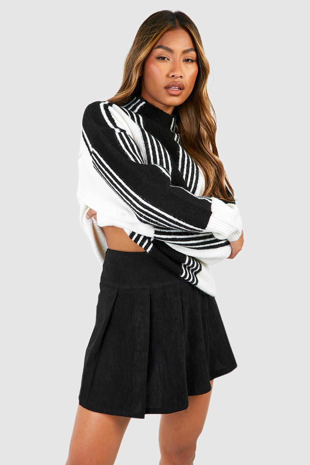 Cord Mid Rise Pleated Tennis Skirt