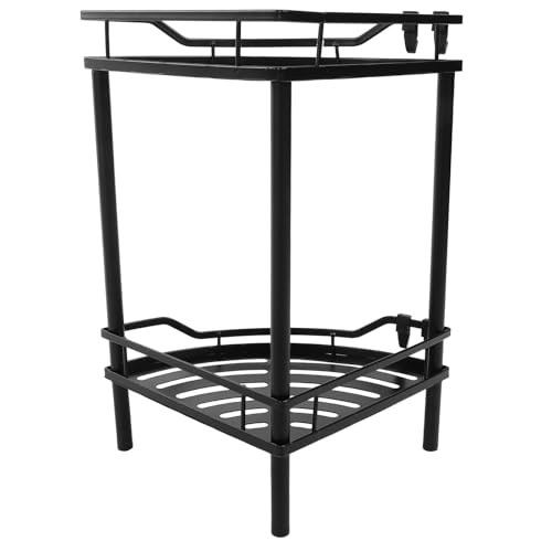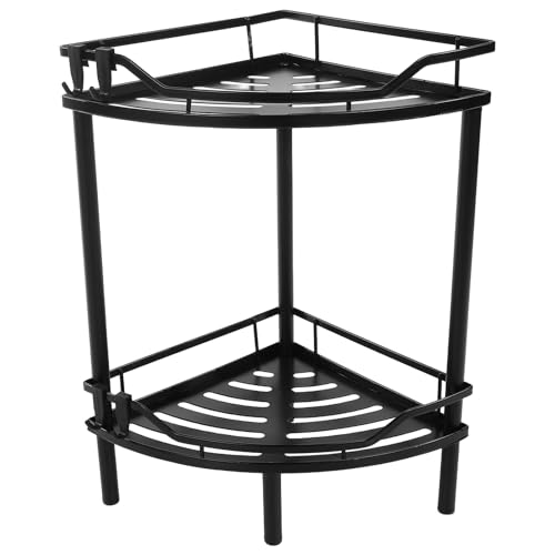 Lurrose 2-tier Black Metal Corner Shelf Rack for Bathroom Floor Standing Storage Organizer with 31cm Tier Height, Space-saving Bathroom Shelf Suitable for Shower and Toilet