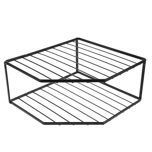NOLITOY Pot and Pan Rack Metal Corner Shelf Stand Double Kitchen Counter Organizer for Pots Pans Black Corner Shelf Organizer