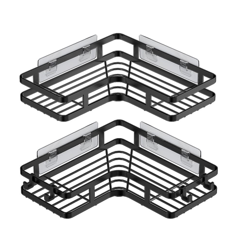 Shower Shelf No Drilling Black Corner Shelf Pack of 2 with 4 Hooks Shampoo Holder for Bathroom Kitchen Storage
