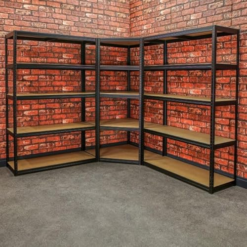 BiGDUG Black Garage Shelving Unit - 2x Shelving Bay Kit With 1x Corner Shelving Unit - Two 180h x 120wx45d cm+One Corner Bay 180h x 90w x 45d cm - 265kg Load per Shelf - 1325kg Load Per Bay