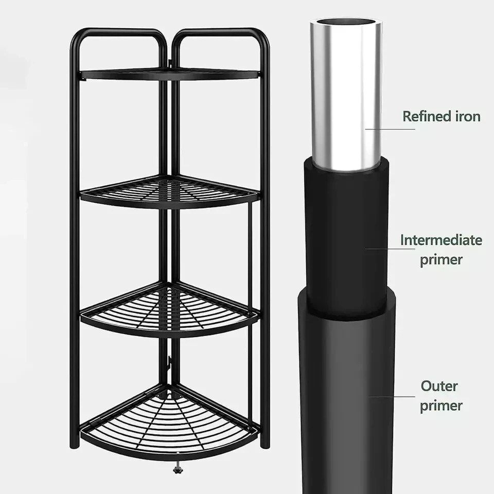 Foldable Black Metal Corner Shelf Unit – Floor Standing Storage