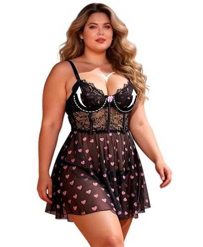 ohyeahlady Lace Babydoll Lingerie for Women Sets Black Corset Dress with Thong Chemise Nightwear Plus Size Sexy Outfits for Women XL