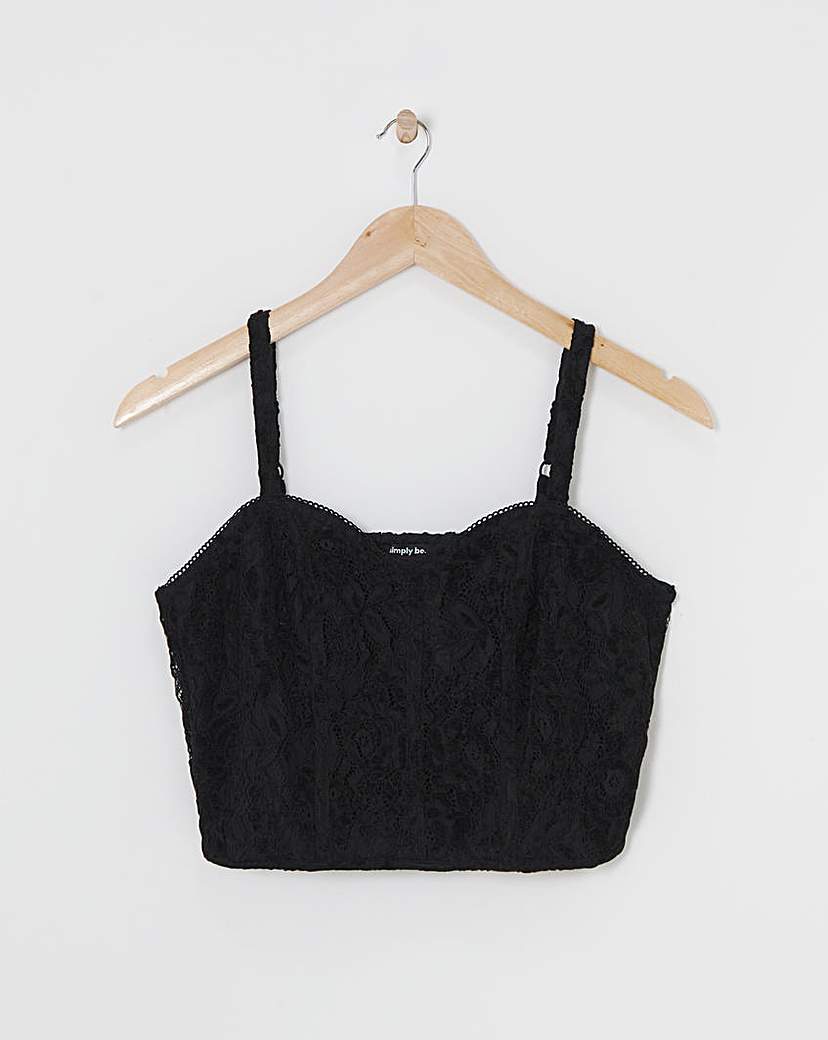 Black Lace Corset Top Black - Simply Be - Size: 10