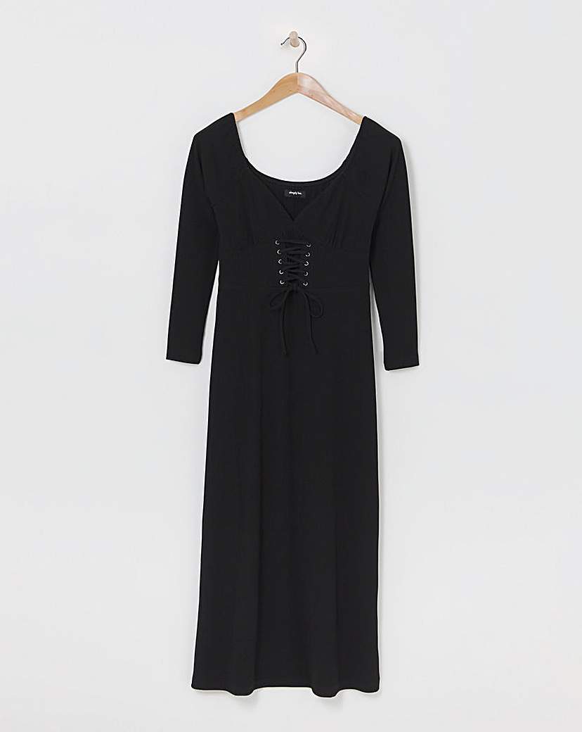 Black Corset Detail Rib Midi Dress Black - Simply Be - Size: 12