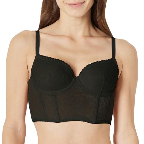 Amazon Essentials Women's Stretch All Over Lace Longline Bustier Corset, Black, 34DD