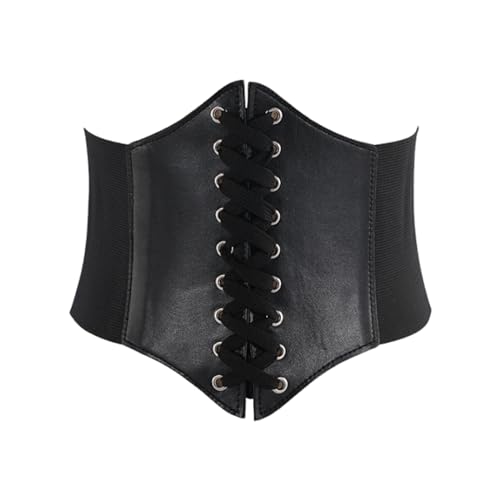 Copbopwn Wide Corset Belt for Women Girls, Tied Waspie Belt Lace-Up Cinch Waist Belt Leather Corset Vintage Belts Black Corset Belt for Costume Halloween Party Dating