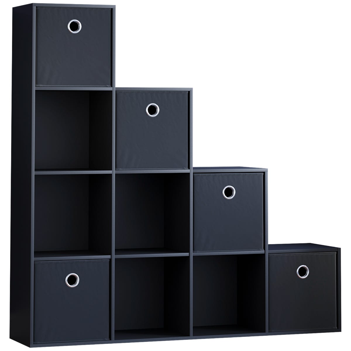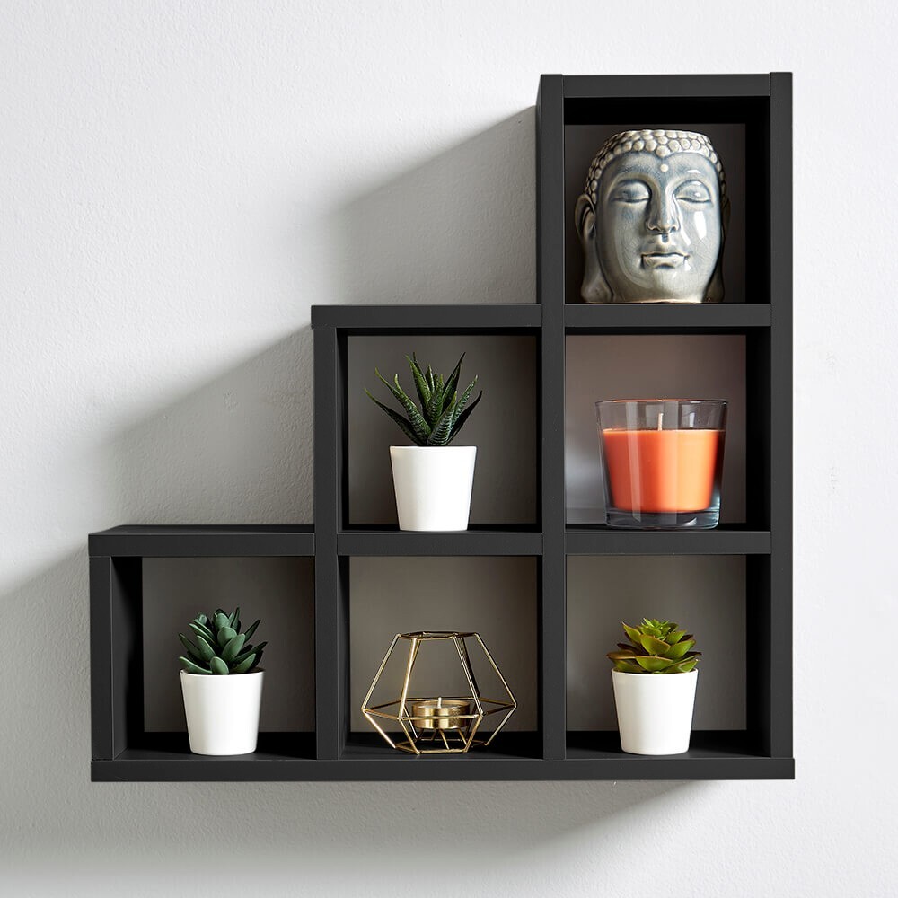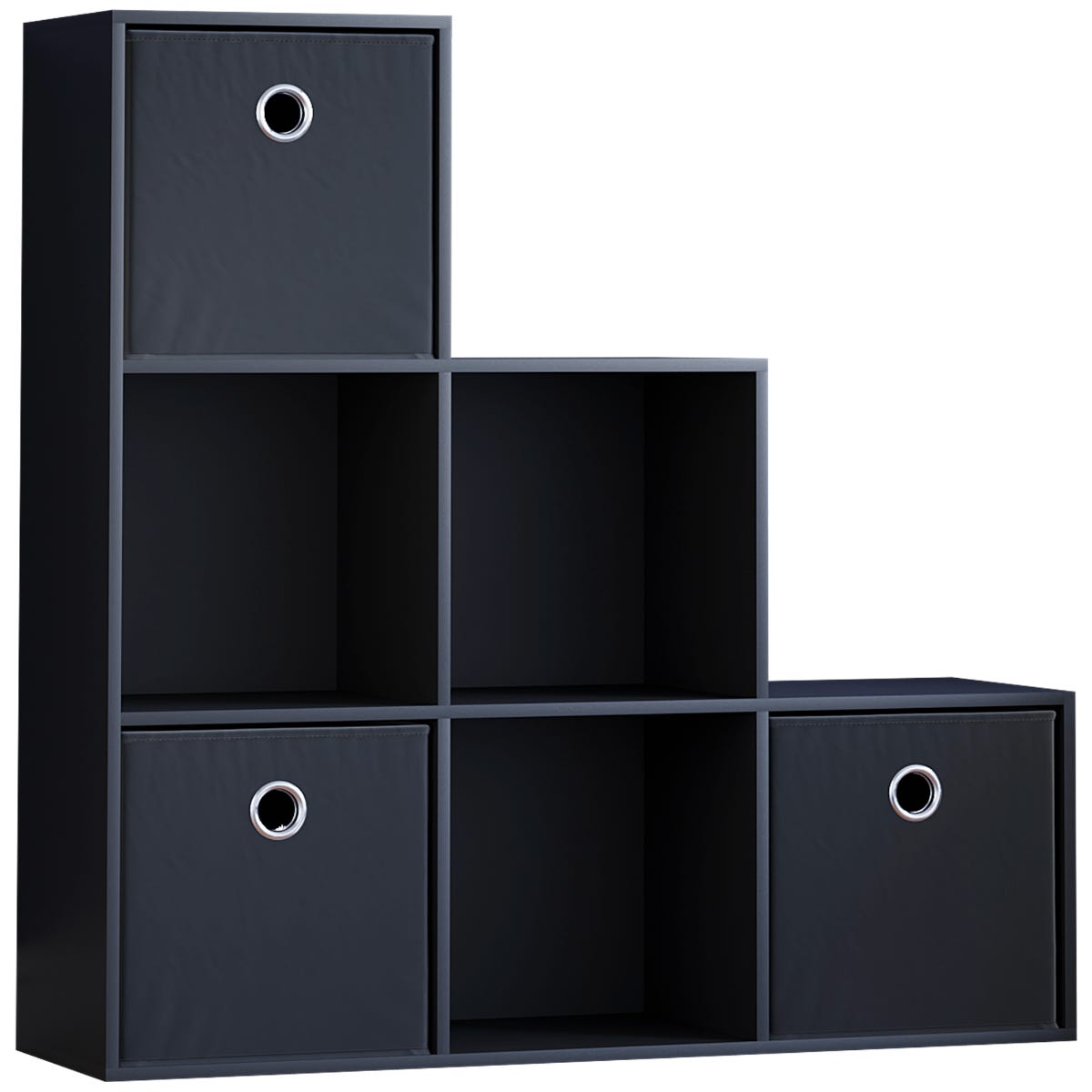 URBNLIVING Black 6 Cube Step Storage Bookshelf Unit
