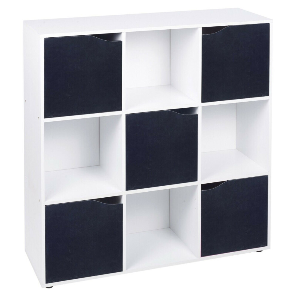 (9 Cube - White, Black) 9 Cube Wooden Storage Bookcase Unit With Doors