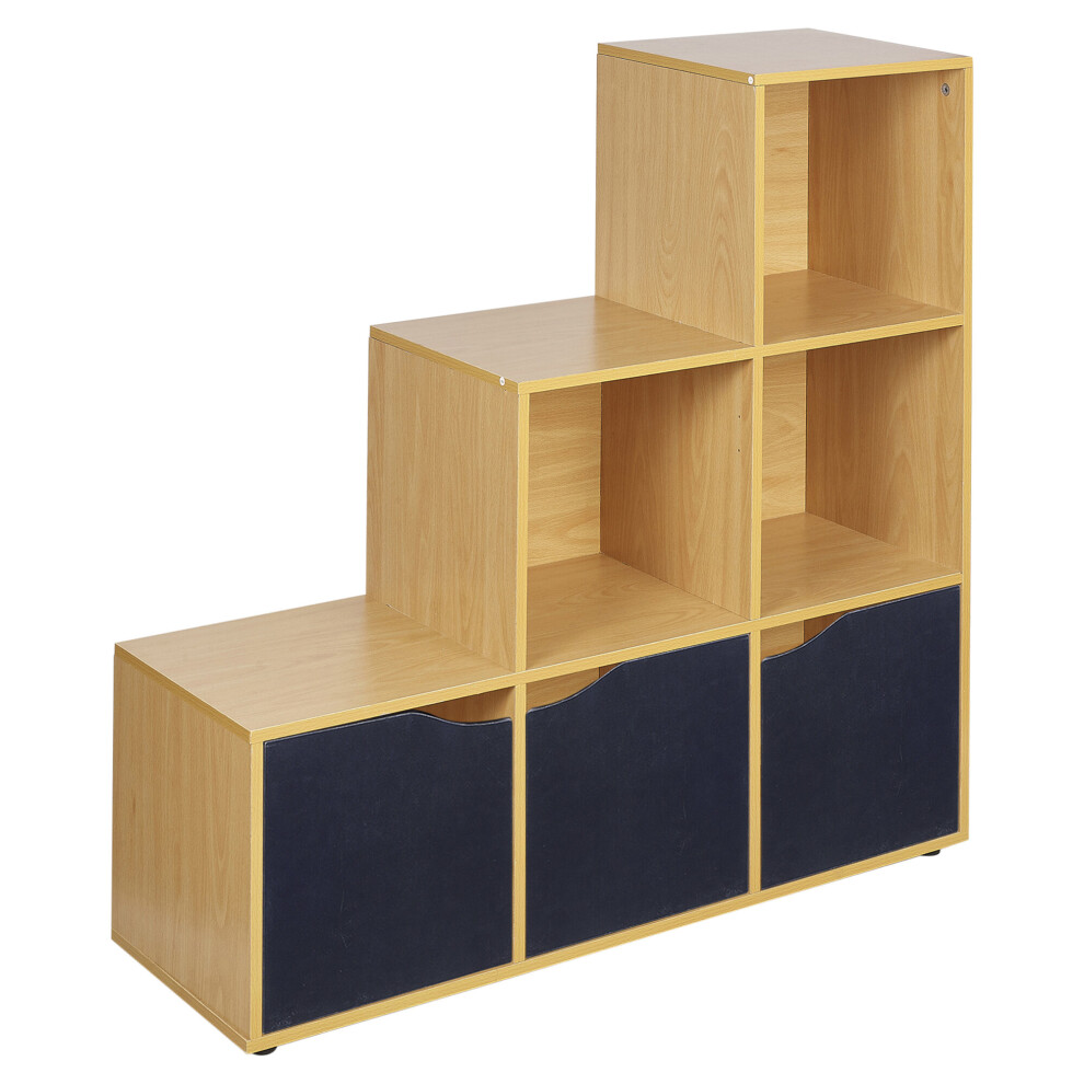 (Beech, Black) 6 Cube Step Storage Bookcase Shelf Unit Doors Wood