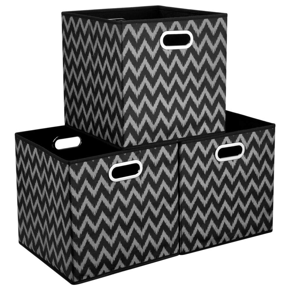 Foldable Cube Storage Boxes 13x13x 13 in Fabric Storage Cubes Bins Black Cube Inserts Storage Chevron Printed Cloth Storage Basketes Folding