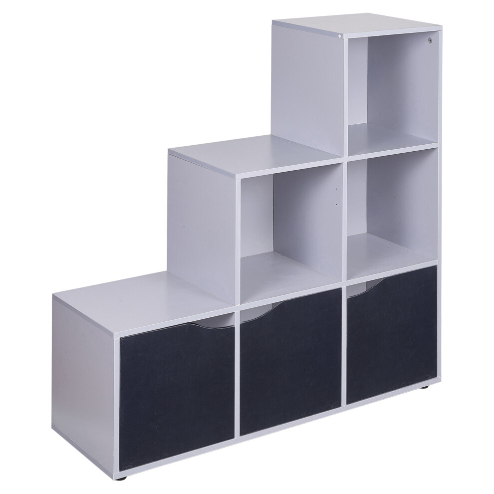 (Grey, Black) 6 Cube Step Storage Bookcase Shelf Unit Doors Wood