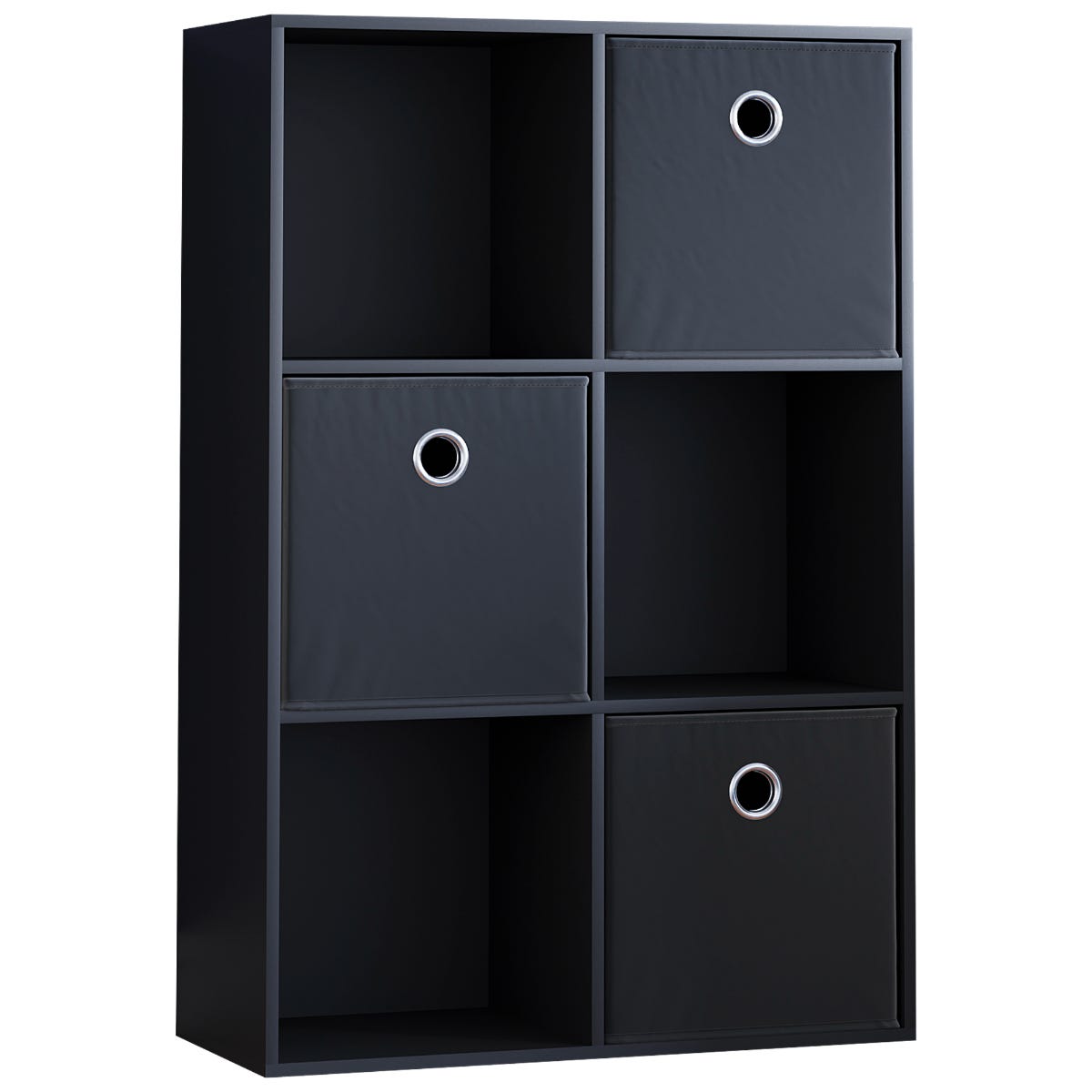 6-Cube Black Bookshelf Storage Shelving Unit for Home Office Study & Living Room