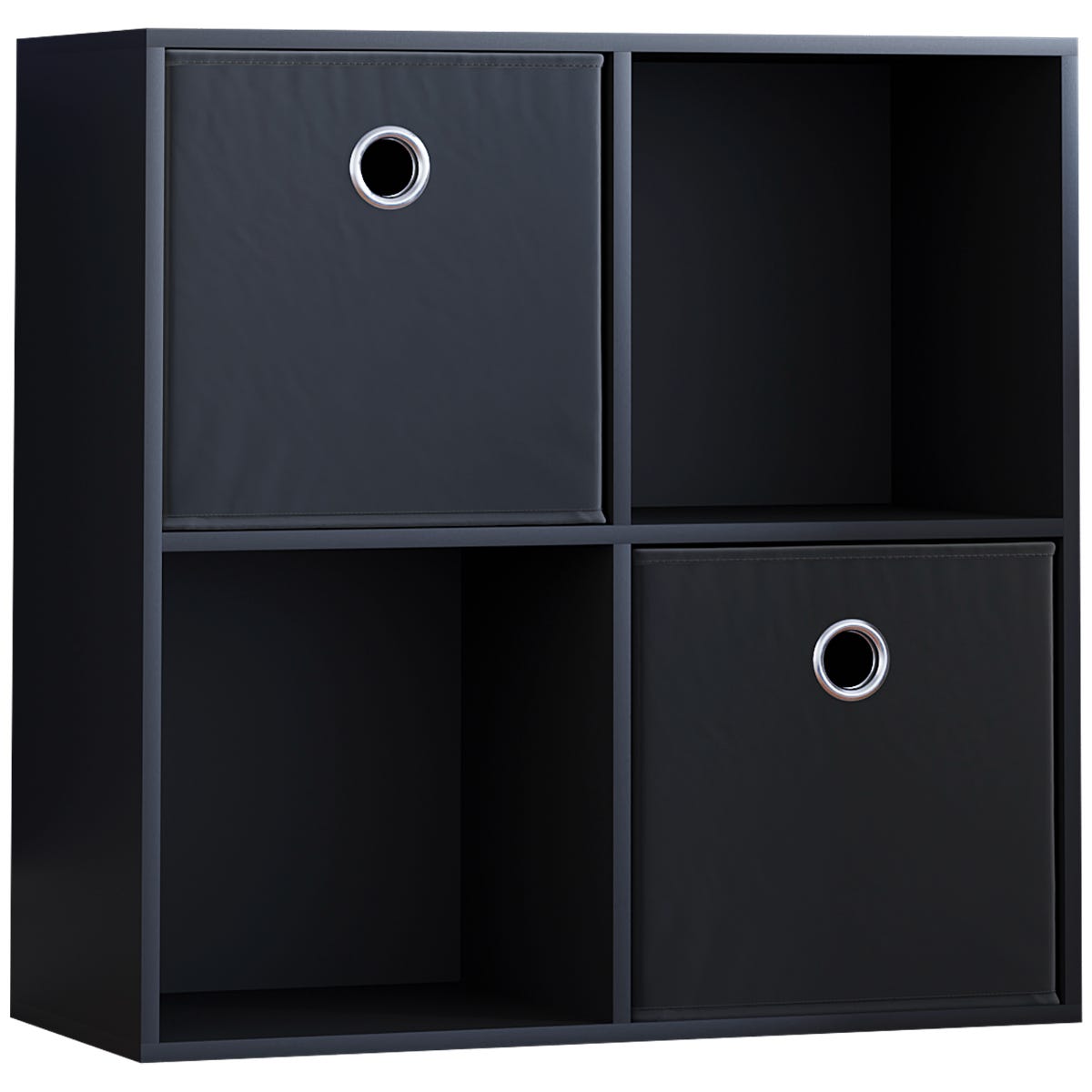 Modern Black-Brown Cube Storage Shelf – 4-Cube Organizer Unit 77x77 cm – Freestanding Bookcase for Home, Office – Durable Particleboard & Fibreboard Shelving with Eco-Friendly Recycled Core