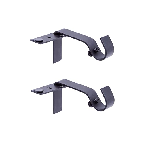 Amazon Basics Metal Curtain Pole Wall Brackets with Adjustable Length of 7 - 11 cm for up to 25 mm Curtain Rod, Set of 2, Black