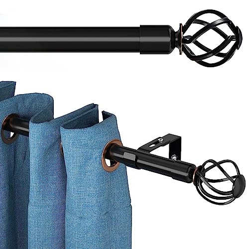 Black Curtain Rods for Windows 48 to 84, Heavy Duty Decorative Curtain Rods with Twisted Cage Finials, 1 Inch Drapery Rods with Brackets Set, Adjustable Splicing Curtain Pole for Living room,Bedroom