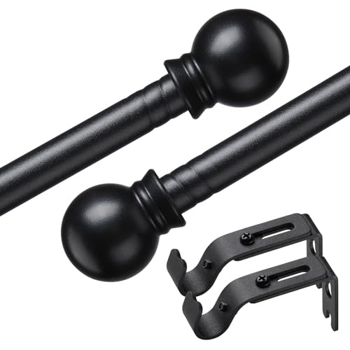 Small Curtain Rods for Windows 30" to 45" 5/8 Inch Standard Decorative Black Curtain Rod with Brackets Easy to Install for Bedroom Living room Kitchen (30",45")
