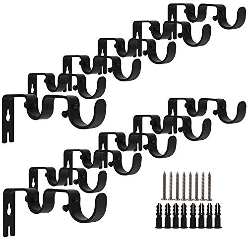 Wencheng 12 PCS Curtain Rod Brackets Heavy Duty Curtain Rod Holder for Double Rod, Black Curtain Rod Hanging Brackets Wall Mount for Home Office