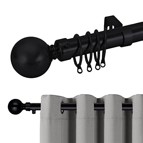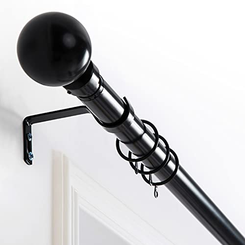 Aspire Homeware Curtain Poles Metal Plain Ball Extendable Curtain Pole 120 cm to 210 cm Matte Black Adjustable Curtain Rod 28 mm Diameter with 60 mm Finials, Rings, Brackets, and Fittings Set
