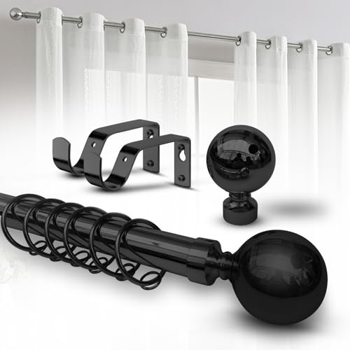 Hafaa Curtain Poles Plain Metal Ball Adjustable Decorative Window Curtain Pole Includes 160 to 300 cm Extendable Curtain Rod, 60mm Size Classic Finials, Rings, Brackets & Fittings Set – Matte Black