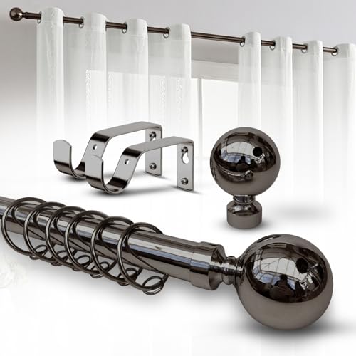 Aspire Homeware Curtain Poles Metal Plain Ball Extendable Curtain Pole 160 cm to 300 cm Black Nickel Adjustable Curtain Rod 28 mm Diameter with 60 mm Finials, Rings, Brackets, and Fittings Set
